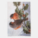 A beautiful vintage winter kitchen towel featuring two robins perched on the branch of a holly bush, painted by the German artist Catherine Klein.