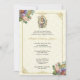 Featuring a beautiful Catholic custom designed Baptism Christening Floral invitation with the Blessed Mother holding Jesus in her arms inlaid in a gold frame with floral spray. All text and fonts may be modified.