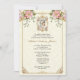 Featuring a beautiful Catholic custom designed Baptism Christening Floral invitation with the Blessed Mother holding Jesus in her arms inlaid in a gold frame with floral spray and gold border. All text and fonts may be modified.