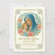 Featuring a beautiful custom designed Baptism Christening invitation with a vintage religious image of the Blessed Mother and the Baby Jesus accented with pink and blue floral design and Scripture Verse.