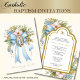 Featuring a beautiful custom designed Catholic Baptism Christening invitation with the Blessed Mother, Our Lady of Grace, overlaid on a blue bow with a floral spray. All text and fonts may be modified.