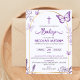 Celebra el Bautismo religioso de tu hijo con esta elegante Invitación con Mariposas Moradas. Con un diseño encantador, esta invitación es perfecta para un lindo Bautismo Católico.