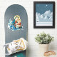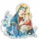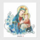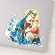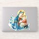 This beautiful contour sticker features a traditional Catholic image of the Blessed Virgin Mary with the Baby Jesus with blue flowers and a white script "Love" overlay.