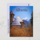 This postcard features the Catholic Church of Theth which is located in the small village of Theth in Shkodër County in Albania. It is set among the peaks of the Shala mountains and can be inaccessible during winter months. The church was one of the first buildings in the area and throughout its history, it has also been used as a school and a health center. Since then, the church has been reconstructed and is in currently in full service to the village. Photo credit: Marsel Hasanllari, 2022.