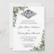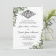 Personalize our beautiful traditional Catholic wedding invitations with a beautiful black and white line art drawing of the Holy Family, Jesus, Mary and St. Joseph and eucalyptus spray of flowers on each corner. All text and fonts can be modified.