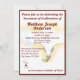 Beautiful Confirmation Invitation design features the image of a descending dove with an olive branch as background design. Dove appears to be glowing, as the Holy Spirit. Image of a knight is pictured at bottom left corner representing a soldier of Christ.
