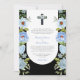 Dark background with Blue Floral watercolor Religious cross Nuptial Mass Matrimony Wedding design.