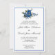 Personalize our beautiful traditional Catholic blue floral wedding invitations with gold wedding rings entwining a golden crucifix. All text and fonts can be modified.