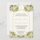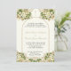 Personalise our beautiful traditional Catholic wedding invitations with gold wedding rings entwining a golden crucifix overlaid on a Marian Cross / Symbol white and gold floral design. Ivory background and all text and fonts can be modified.