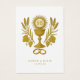 Elegant Catholic wedding keepsake featuring a radiant gold chalice and Sacred Host with IHS monogram, flanked by symbolic wheat and grapes, and adorned with intertwined wedding bands. A reverent reminder of the Sacrament of Holy Matrimony, united with the Eucharistic mystery. Perfect for Catholic nuptials, anniversaries, or holy remembrance of a couple’s vow before God. Custom names and wedding date may be personalised.