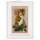 Lovely Christmas Card with the Blessed Virgin Mary and St. Joseph exchanging rings. Holly and Ivy flowers and wedding rings accent the image. All text and fonts can be modified.