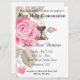 Beautiful Traditional First Holy Communion Invitation. with pink roses, gold chalice & host. All text and fonts can be easily modified. We also offer matching Communion cards, favours, labels, etc., with this design. Visit the Shower of Roses Shoppe on Zazzle and browse our large First Holy Communion collection.