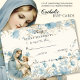 Featuring a beautiful custom designed Baptismal Christening invitation with a blues azure floral border, the Blessed Virgin Mary holding Jesus and a scripture verse on the front. All text and fonts may be modified.