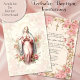 Featuring a beautiful custom designed Baptism Christening invitation with pink roses, the Blessed Virgin Mary decorative border. All text and fonts may be modified.