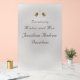Designed to coordinate with the Catholic Grace Wedding Suite, this design bears the essence of grace and elegance as it announces the newly married couple. Fully customisable, this text is in an elegant Nuptial font giving it that perfect look for weddings. Image at top portrays a golden cross between two hearts. Text is in a silver colour. background gives that foggy yet elegant appearance.