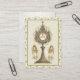 This is a beautiful small card. It does not open, just FYI. I did not have any custom printing on it.
