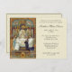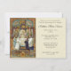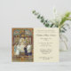 Featuring our traditional Catholic First Holy Communion invitation with Jesus holding the Eucharist with angels offering it to a young boy and girl at the altar. The saints accompanying them are St. Aloysius Gonzaga and St. Agnes. Suitable for a boy or a girl's Communion. On the back is a scripture quote with a black and white image of the Host, Chalice, & wheat representing the Bread of Life, Jesus. The background on both sides is a very light ecru lace design. Fonts, texts, and images can be modified. The Shower of Roses Shoppe also offers coordinating Remembrance Holy Cards.