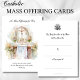 A Mass card (also known as a Mass offering card, memorial card or a remembrance card), is a card given to someone to let them know that they, or a deceased loved-one, will be remembered and prayed for in the intentions at Holy Mass. Featuring a beautiful watercolor impression of a Catholic High Altar.