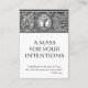 A Mass card (also known as a Mass offering card, memorial card or a remembrance card), is a card given to someone to let them know that they, or a deceased loved-one, will be remembered and prayed for in the intentions at Holy Mass.
