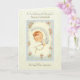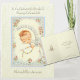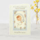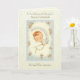 In a vintage illustration, a charming baby holds a rosary, exuding an aura of timeless sweetness and blessings...suitable for a girl or a boy. This beautiful depiction signifies the arrival of new life within the family, blessed by God. Inside is a lovely symbol for Mary standing at the Foot of the Cross of Jesus, the Marian Cross.