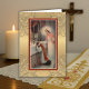 Celebrate the Anniversary of Priesthood with this beautiful traditional Catholic image of a priest offering the Holy Sacrifice of the Mass with Our Lord beside Him. All text and fonts may be modified.