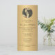 The is a beautiful gold Catholic Priest Ordination Anniversary Invitation with an image of a priest offering the Holy Sacrifice of the Mass at the altar. On the back features a beautiful traditional Catholic religious poem "A PRIEST".