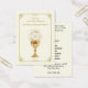 Featuring a beautiful Catholic priest ordination remembrance prayer card with a gold chalice and the Holy Eucharist. All text and fonts can be modified.