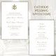 Personalise our beautiful traditional Catholic wedding invitations with a timeless gold religious image of the Blessed Mother Mary's Marian Cross with lilies. All text and fonts can be modified.