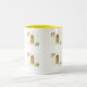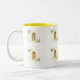 White and yellow coffee ceramic mug with our lady of Guadalupe print. Catholic gifts.