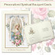 Our Spiritual Bouquet cards feature a beautiful vintage image the Rosary and a bouquet of pink roses and red berries. Inside is a beautiful image of the Marian Cross with pink roses. All text can be modified.
