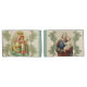 The front image is a traditional Catholic image of the Blessed Virgin Mary holding the Child Jesus on her lap. He is holding a globe. The coordinating pillow case has a traditional image of St. Joseph holding the Child Jesus in his arms. On the back of each of the pillow cases is an image of the Blessed Virgin Mary with Jesus and St. Joseph on the other pillow case. Each case has a vintage image of angels on each side and vintage floral decor below.