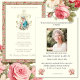 These are beautiful custom designed traditional Catholic vintage funeral thank you notes with the Blessed Virgin Mary, overlaid on a Marian Cross with pink flowers. Also included is the photo and information of loved one. All text and fonts can be modified.