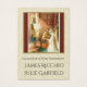 A beautiful Catholic remembrance to give to each wedding guest! This image is of Mary and Joseph's betrothal with a red and gold border and an ecru lace background. All texts and fonts may be customised.