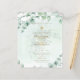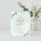 Budget priced Elegant Christian, Catholic faith wedding invitation with text template fields both sides for you to include wedding ceremony, reception, rsvp, gift registry brief order of the day program. Greenery botanical Eucalyptus leaves foliage theme with gold lettering and cross.