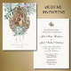 This traditional Catholic wedding invitation features a beautiful image of the Blessed Virgin Mary and St. Joseph as they are wed. This is on a white vintage lace background accented mint green and lavender flowers. All text and fonts can be modified. Our collection also has coordinating wedding items with this design.