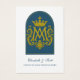 This reverent Catholic wedding prayer card features a radiant gold Marian monogram crowned in glory and framed within a Marian blue arch. The front honours Our Lady, whose intercession blesses the Sacrament of Holy Matrimony. Inside, a solemn nuptial blessing prays for the couple’s unity, peace, and holiness, modelled after the Holy Family. A cherished keepsake for weddings rooted in the beauty of Catholic tradition and devotion to the Blessed Virgin Mary.