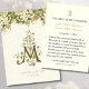 Featuring a beautiful traditional Catholic image a gold Marian Cross accented with white flowers, and a white lace background. A prayer is on the back for the bride and groom. All text and fonts can be modified.
