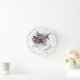 The clock did not take as long to arrive as I thought it might and was extremely well packaged. I didn't do the measurements so I didn't realize it is a little smaller than the average clock but that does not matter (just make sure you check if that's important to you).It is really nifty! It seems very solid and well made not flimsy at all. It has been going well and has kept good time in its few weeks on my wall. Nice product. Gets noticed too! Nicer in real life than the picture but true to the picture