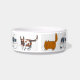 This is a heavy, durable bowl decorated with Tibbies of many colors, the perfect size for hungry/thirsty Tibs. The design is interesting and printing clear.