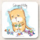 Orange Tabby Cat with a putrid look on his face holds a torn catnip filled toy fish. Many other torn toys surround his feet. He looks to have gone overboard on the catnip and we call him Catnipped Kitty! Original design by Christie Black of Creations from the Heart.