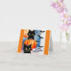Cute, picture of two black cats, pumpkins and flying bats, are featured on this Halloween greeting card. Front of cards reads, "Happy Halloween" and inside reads, " Please don't scream, cause things aren't as scary as they seem. But do have a Happy Halloween!" A sweet card to send a child for Halloween!