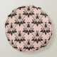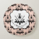 This pretty round pillow is decorated with damask look pattern featuring a linear cat motif in a relaxed pose surrounded by catnip leaves and flowers in black silhouette. Easily customise the background colour to suit your decor.