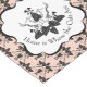 This pretty table runner is decorated with a damask look design featuring a linear cat motif in a relaxed pose surrounded by catnip leaves and flowers in black silhouette.