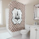 The pretty damask look pattern embellishing this shower curtain features a linear cat motif in a relaxed pose surrounded by catnip leaves and flowers in black silhouette. Easily customise text and background colour to suit your bath decor.