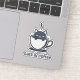 Cats and Coffee, Noir Feline, Minimalist Cat Art, and Funny Cat Quotes. This unique sticker features an adorable kitty illustration enjoying its morning ritual, making it the perfect kawaii decal for cat lovers and caffeine addicts alike.