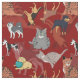 Cats And Dogs Pattern Design On Red Fabric