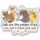 Cats are like potato chips - you can't have just one Funny cat saying with an image of 10 different coloured cats.