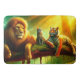 This bath mat has a lion, tiger and a house cat on it.