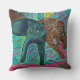 This throw pillow was designed by taking two photographs my friend gave me of her two cats. The photographs were converted into black and white prints. The color and style then restored with the use of colored pencils.
