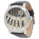 Men's black leather vintage watch : Cats Dancing in the Moonlight, illustration by Louis Wain (1860-1939).